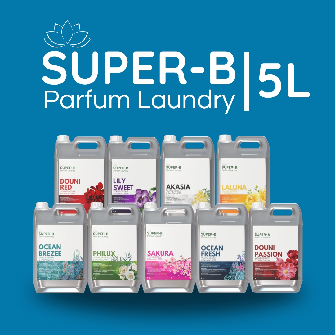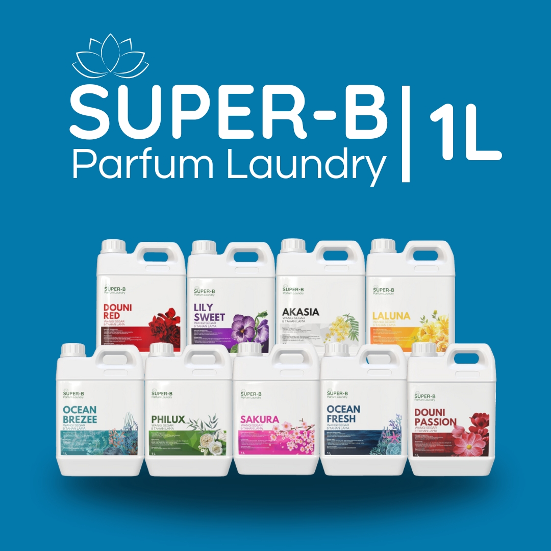 Super-b Parfum Laundry hadir untuk memberikan wewangian tahan lama pada pakaian Anda, baik untuk laundry profesional maupun perawatan di rumah. Dengan formula khusus yang dapat mengatasi bau tidak sedap dan meninggalkan aroma segar sepanjang hari, Super-b adalah pilihan tepat untuk ibu rumah tangga yang ingin membuat pakaian keluarga lebih harum, serta untuk pengusaha laundry dan jasa setrika yang ingin memberikan layanan ekstra bagi pelanggan mereka. Wangi segar, pakaian tetap bersih—ini bukan hanya janji, tapi pengalaman yang bisa Anda rasakan setiap hari!