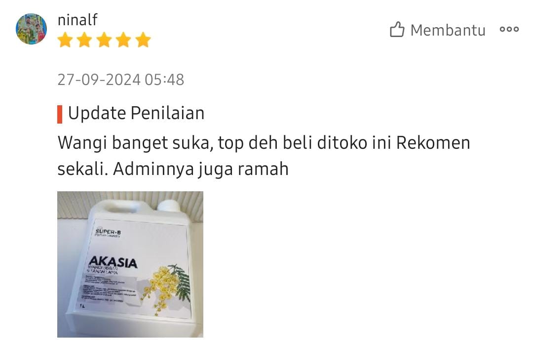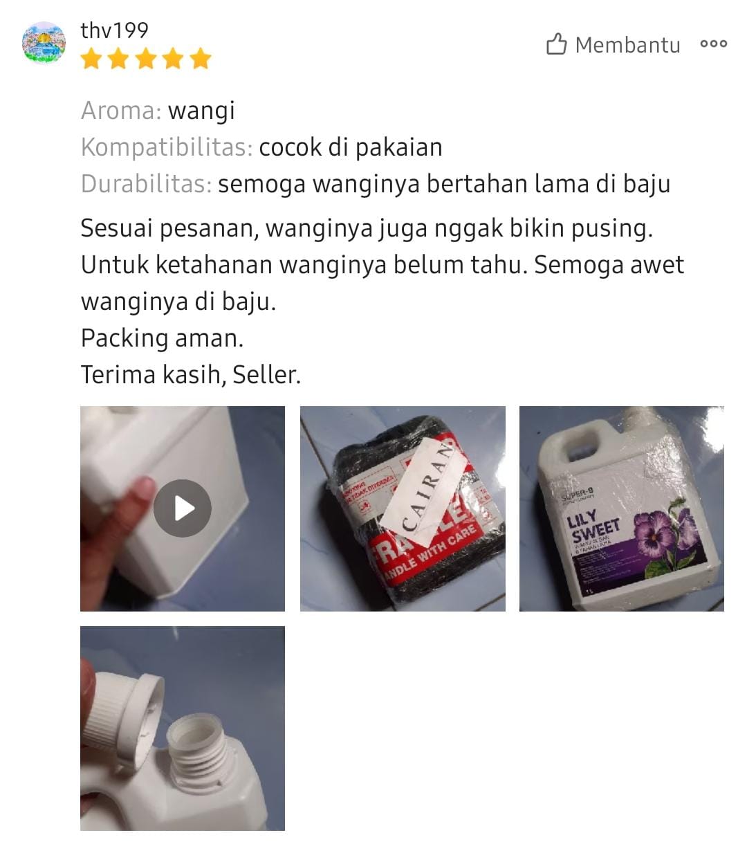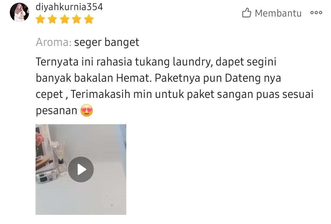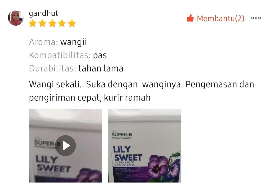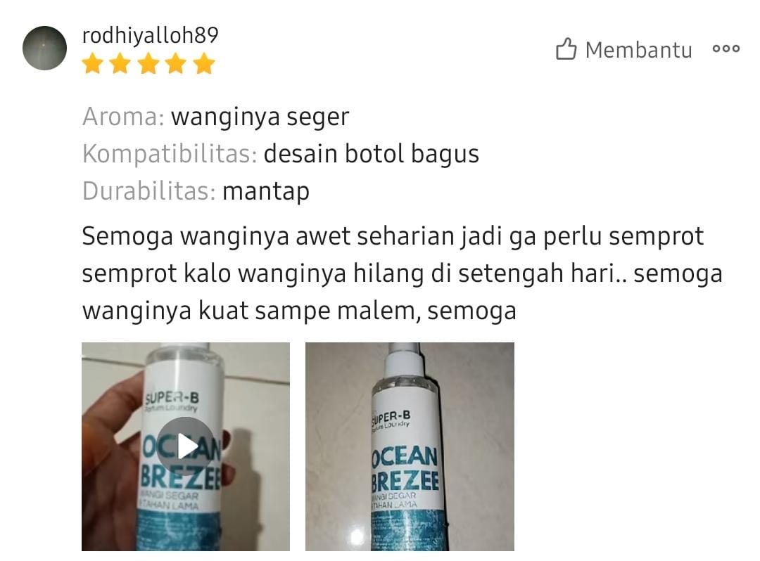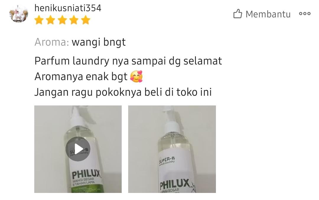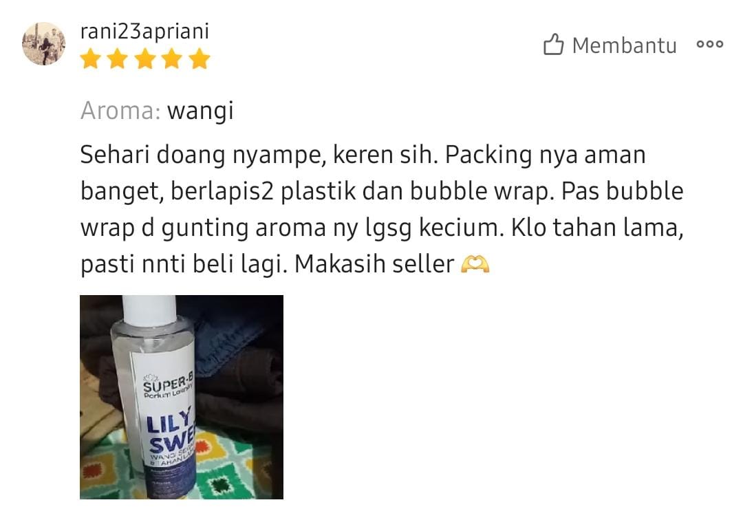 Beberapa testimonial real yang diberikan oleh pelanggan untuk produk Super-B Parfum Laundry